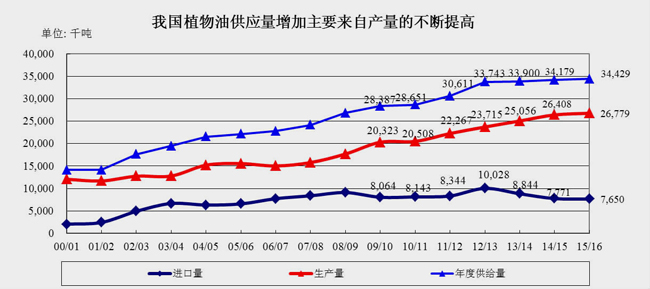 2015年度,我國(guó)食用油市場(chǎng)的總供給量為3442.9萬(wàn)噸,其中包括國(guó)產(chǎn)油料和進(jìn)口油料合計(jì)生產(chǎn)的食用油為2677.9萬(wàn)噸,仍有合計(jì)為765萬(wàn)噸食用油缺口需要依賴進(jìn)口!